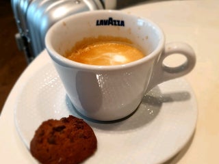 Super crowded with business travelers, very small and hard to find a seat