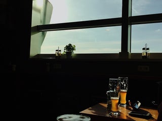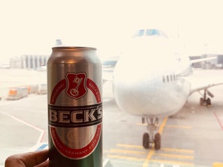 Good cappuccino (foam was anemic but solid, organic beans and good flavor). Nice juices too, plus outlets. And beer (as it was 6:45am, I skipped that)