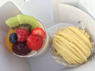 土曜の午後にシューアラクレームとモンブラン。ひっきりなしにお客さんが来るけど、ほとんどテイクアウトなので、喫茶は割とゆっくりできます。