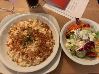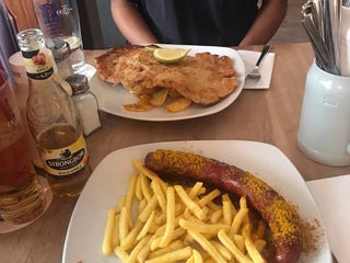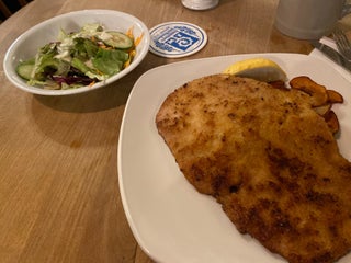 Огромнейшие порции, за шницель, картошку и салат 11евро цена качество 👍🏻 очень вкусно ! Рекомендую! Приходить голодным!