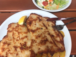 Huge portion of schnitzel but it smelled like horse..