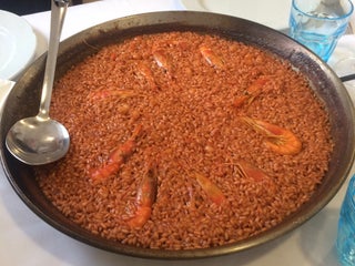 Probar el arroz con chipirones, alcachofas y langostinos. También el surtido de flanes de la casa