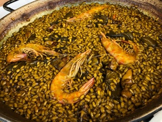 El pulpo a la brasa y el arroz langostinos y alcachofas
