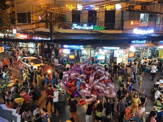 Prices are quite high for drinks, best to stop by before happy hour ends at 9pm as they have 2 for 1 drinks. Great people watching, and great music.
