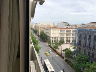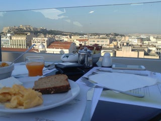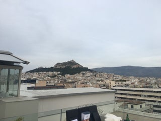 The roof top restaurant and bar an awesome view of Athens and Acropolis. Free nuts and chips with drink