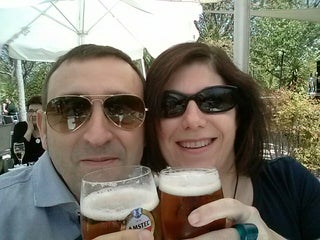 Disfrutando de una birra en la fiesta saharaui...