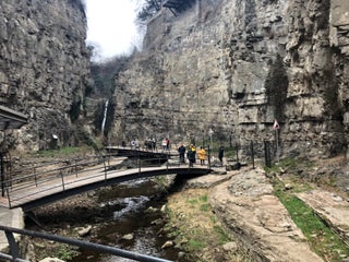 Водопадом можно полюбоваться со смотровой площадки у входа в ботанический сад, или спустившись в романтическое ущелье, где вечерком так приятно выпить вина в хорошей компании.