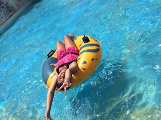 市外は大人750円、高校生まで500円。屋外の流れるプールやスライダーが楽しい。眼鏡やネックポーチなどは外すよう指導されます。屋内プールは水泳帽着用かつコース厳守で遊泳せよとのこと。