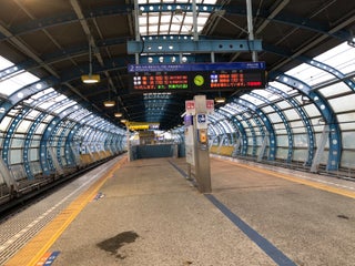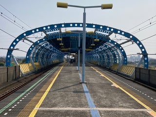 関東の駅百選に選出されたこの駅は、半円状の鉄骨で覆われた独特の形状をしており、すぐ近くには日本の在来鉄道では初のニールセン・ローゼ橋が架けられている。